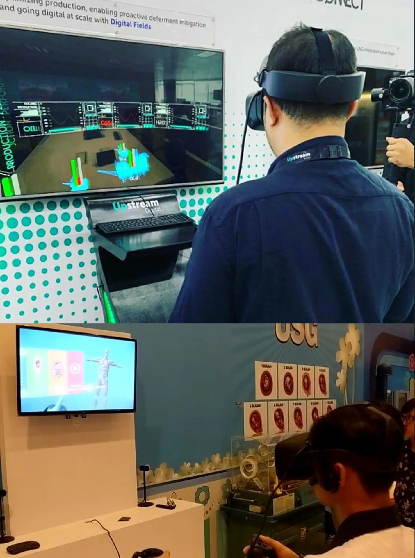 Simulasi VR ini ditujukan seakan-akan pengunjung yang memakainya beranda di dalam dunia virtual dengan menggunakan alat yang di letakkan di kepala.